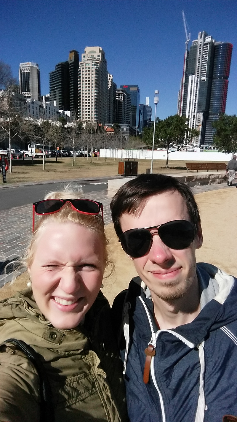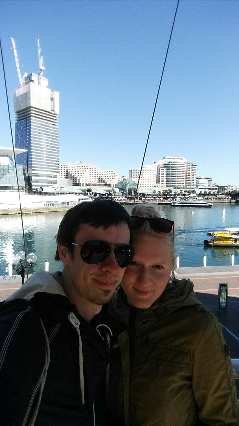 Ein Känguru am Gate? Eine Gruppe Aborigines, die eine Didgeridoo Sonate anstimmen? Nein – es sind Deutsche! Die ersten sind uns direkt nach der Ankunft im Airport begegnet. Wir saßen vollkommen fertig auf einer Bank, als direkt hinter uns zwei junge Mädels ihre Konversation auf deutsch starteten. Und heute, als wir endlich in der Innenstadt von Sydney angekommen sind, sahen wir dort zwei Gruppen, die sich jeweils über Dynamo Dresden Cappies und Jutebeutel mit dem Wort “läuft” outeten. Es waren zum Glück nicht die für Deutsche standardisierten Tennissocken, die hier herhalten mussten. Neben diesen Gruppen gab es auch Bauarbeiter anzutreffen, die sich im besten Plattdeutsch über den Kaffee austauschten. Das war direkt 3 Minuten nach dem wir an der Hafenpromenade angekommen waren.