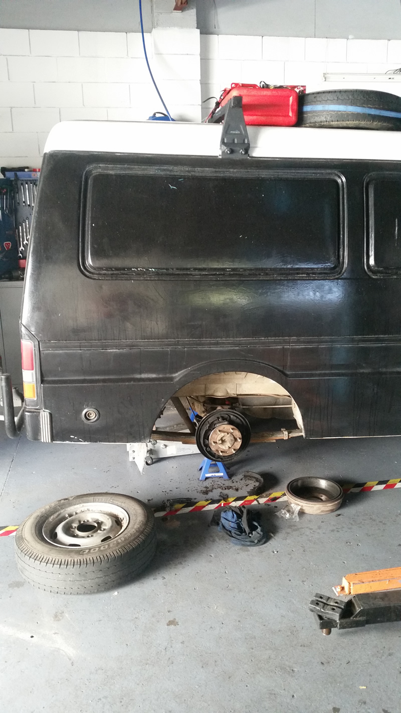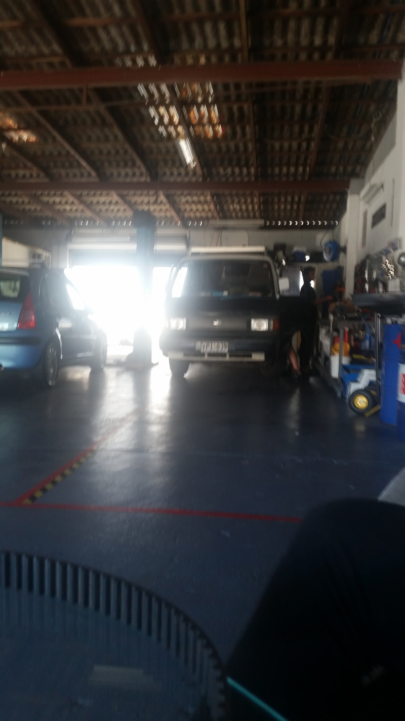 Naja jedenfalls machten wir uns um 16 Uhr auf die Suche nach einem Mechaniker, der uns für wenig Geld den TÜV abnimmt. Schnell einen gefunden, begutachtete er Sonia fünf Minuten vor Feierabend und kam zu dem Entschluss, dass sie ein Öl-Leck hat und alle vier Reifen so gut wie unfahrbar sind. Er wolle sich das am nächsten Tag nochmal genauer anschauen und es würden Kosten in Höhe von 500 A$ (MINIMUM) auf uns zukommen, wenn wir nur zwei Reifen austauschen und die anderen zwei durch unsere Ersatzräder ersetzen, die oben auf dem Dach sind.