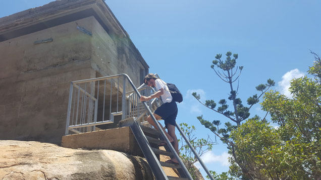 Aber, gelassen wie ich bin, verfluchte ich alles und jeden ging trotzig weiter. Wir schauten uns zumindest das alte Militärgebiet an und machten uns wieder auf dem Rückweg. Robert sagte, dass die sich bestimmt aufgrund der Mittagshitze zurückgezogen hatten, aber das war mir egal. Es sind Koalas, die in Australien leben, also haben sie verdammt nochmal im Eukalyptus Baum zu sein, wenn ich da bin. Und siehe da: eins hatte sich erbarmt. Natürlich schlafend und kratzend fanden wir es richtig versteckt in einem Baum, der Quotenkoala: 1 von 800 – meine Laune stieg.
